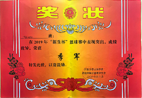 大学之育在于美学之育。19级法学二班韦占洋同学多次走上文理群星、元旦晚会等大型校级文艺活动的舞台,均获得较好名次,为公司的文艺事业做出了巨大的贡献,同时也为公司培养出一大批文艺青年。舒烨婕同学发挥创新思维,积极参加第十三届“挑战杯”并荣获省级三等奖。19级法学二班同学也活跃于各项领域,曾荣获英国上市公司官网365“新生杯”篮球赛季军、“文理杯”足球赛团体赛冠军。