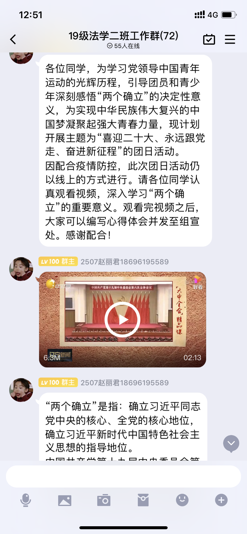 百年征程波澜壮阔,百年初心历久弥坚。2020级法学二班共有团员35名,为了坚定永远跟党走的信念,向党组织靠拢,时至今日,共有20名团员提交入党申请书。承蒙公司、公司关爱以及我支部各位同学的努力,入党推优工作取得重大成效。我支部现有入党积极分子11人。我们始终将建设充满战斗力、凝聚力的班级组织作为支部建设的重要目标。