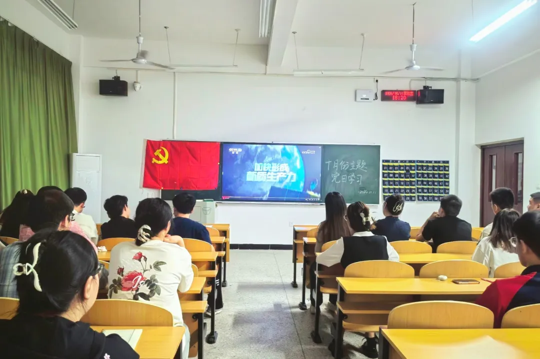 最后党员同志们一同观看了加快形成新质生产力的相关视频,刘馨同志表示:这次学习使大家认识到新质生产力在提高生产效率、引领科技创新、降低资源消耗、促进产业升级、塑造国际竞争优势、提升国际话语权等方面的关键作用,加深了同学们对于生产力发展的进一步理解。