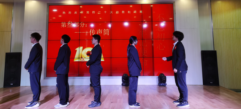 伴随着院文艺部带来的优美舞蹈《芳华》,党日活动的序幕逐渐拉开,本次党日活动学习的主要内容是二十大相关精神,学习方式是采用兼具学术性与趣味性的知识竞赛形式。