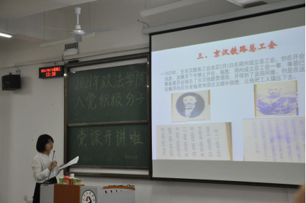 2021年是中国共产党成立100周年。为了进一步开展好党史教育活动,引导同学们知史爱国。2021年5月19日中午12:30,公司组织了110名入党积极分子在5-125开展讲党课活动,本次党课由公司思想政治课部负责人曹卓老师主讲。
