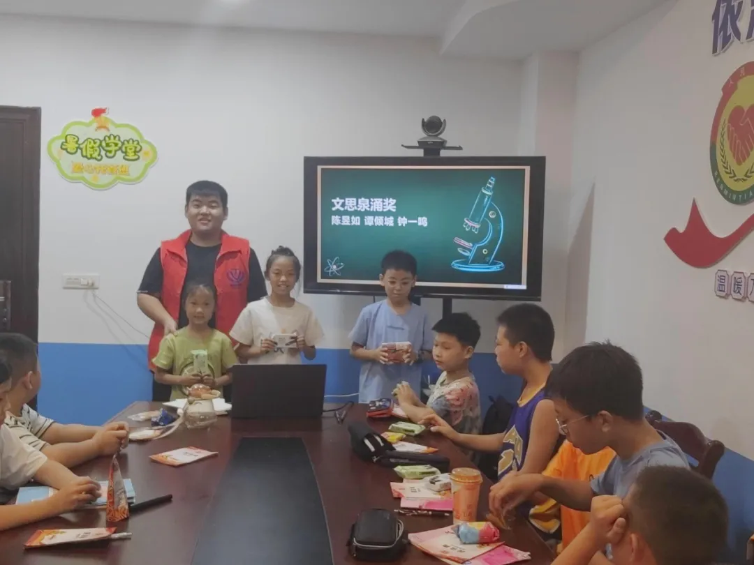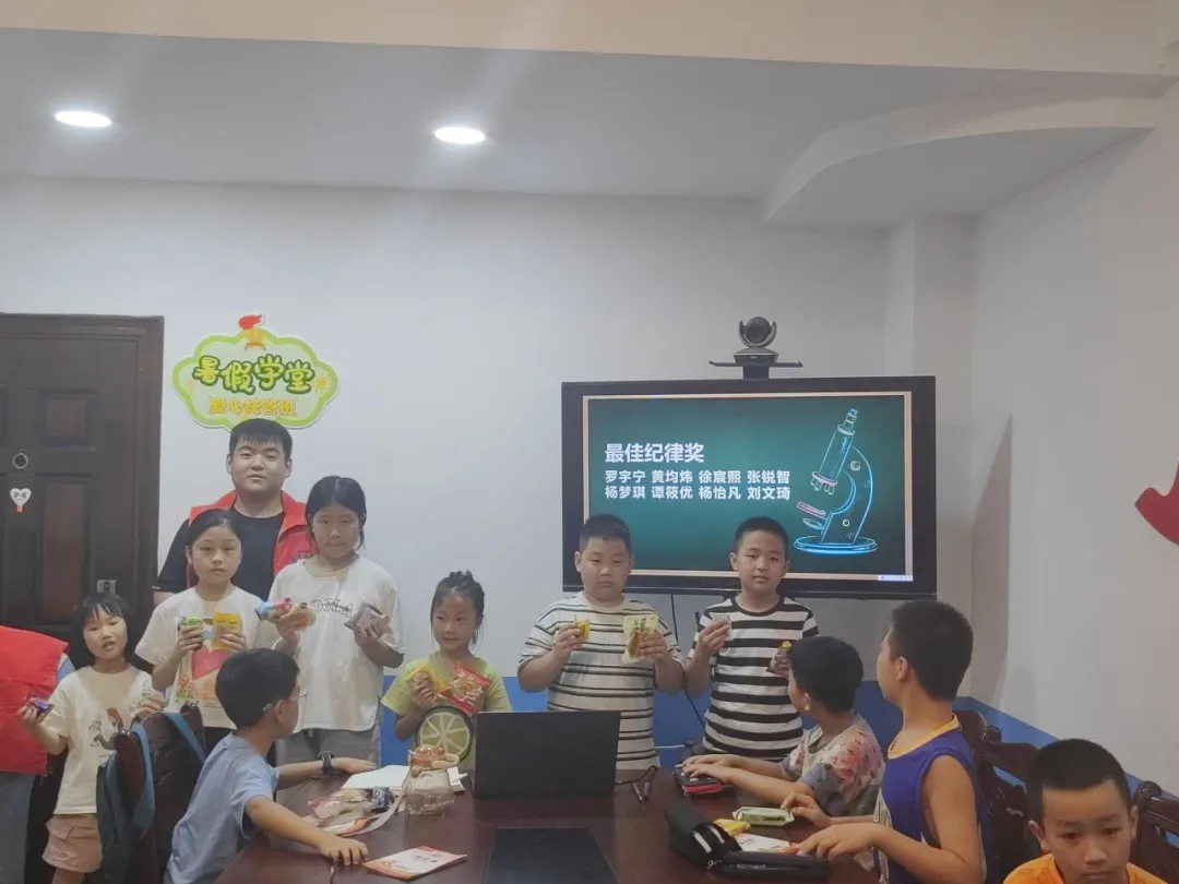 兑换到自己心仪的奖品后,小朋友们的脸上都露出了满意的笑容,趁着课间把玩着自己兑换的小礼物,欢乐的笑声充满了“暑期学堂”的教室。
