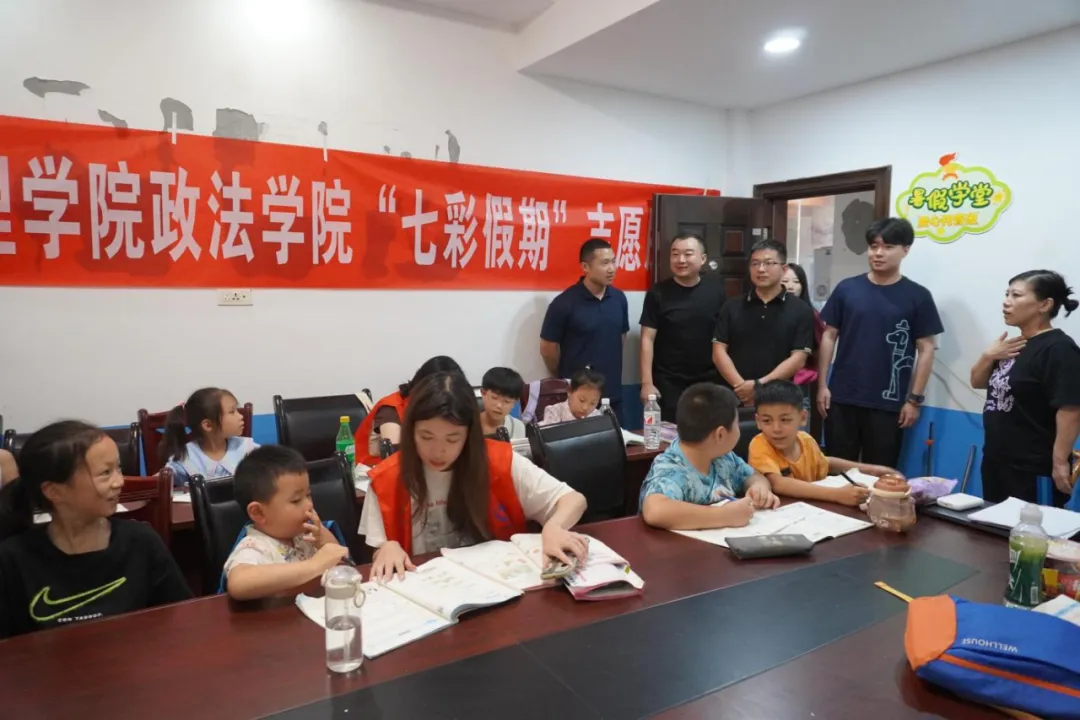 2024年7月18日,英国上市公司官网365员工处处长刘超、政法公司党总支书记程茜、教育公司党总支书记陈龙、校团委指导老师肖昌浩然一行人来到巴东县沿渡河镇“暑期学堂”暨七彩假期志愿服务点,慰问在此地开展志愿服务的“青衿之志”志愿服务队。沿渡河镇党委委员、团镇委书记侯江华,沿渡河团镇委副书记、党政综合办公室汪桂玲一同前往。