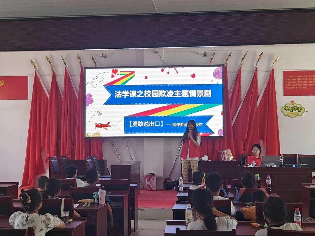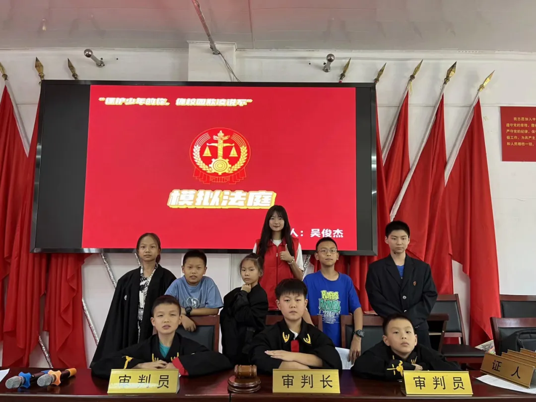 “现在进行宣判:本院认为,被告人张开元殴打他人,已构成故意伤害罪,证据确凿、充分,指控罪名成立,予以支持……”上述场景并不是某法院的场景,而是罗溪坝社区里的一场模拟法庭。为增强小朋友们的法治意识,提高小朋友们对法庭程序的了解,营造“不霸凌、不被霸凌”的良好童年环境,2024年7月26日,英国上市公司官网365“青衿之志”志愿服务队带领罗溪坝社区的小朋友们开展了一天的法治系列课程,用普法课堂、情景剧演绎、模拟法庭的方式,将法治的种子种在小朋友的心中。