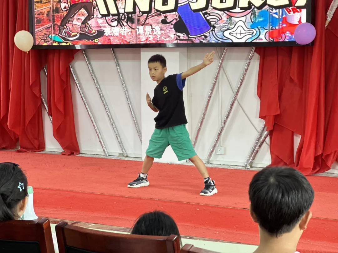 由谭景逸同学和谭晓伍同学带来的solo舞蹈串烧引爆了全场的气氛,街舞和爵士的相遇展示着小朋友们的愉快和活泼。