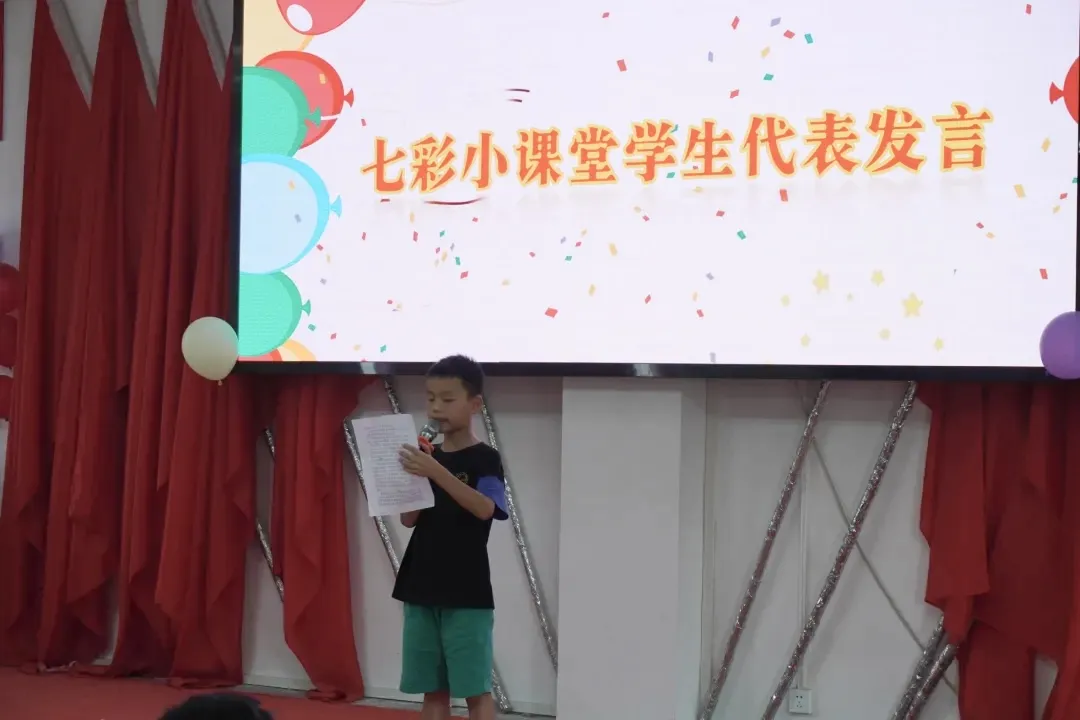 作为本次“暑假学堂”的优秀员工,谭景逸同学作为员工代表进行发言。他用简单的语句表达着对志愿者老师们的感激和喜爱,立志将用追梦的动力实现自己人生的价值。