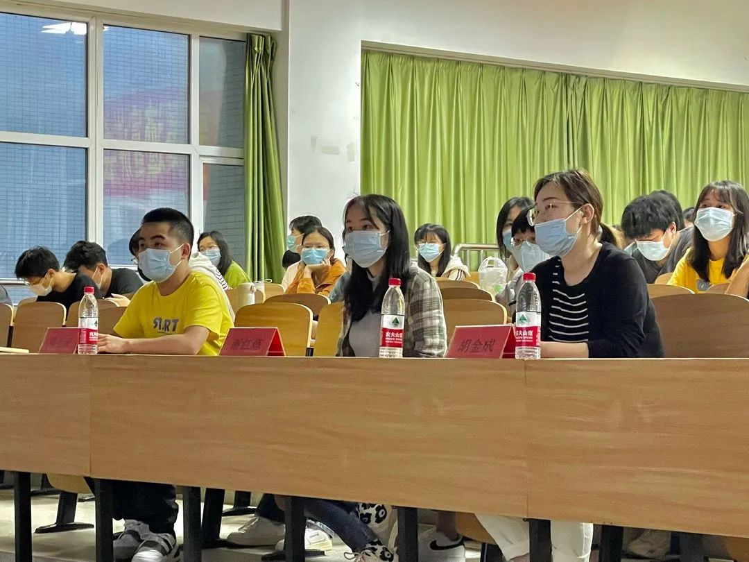 宣讲内容:汤宝庚学长用亲身经历鼓励我们努力学习,多参加校内各项比赛,坚持“不到楼兰终不还”的拼搏精神。在课外积极投身于社会实践,发扬自己的兴趣爱好、参加文学创作、分享考研经验,不负韶华是对我们共同的勉励。