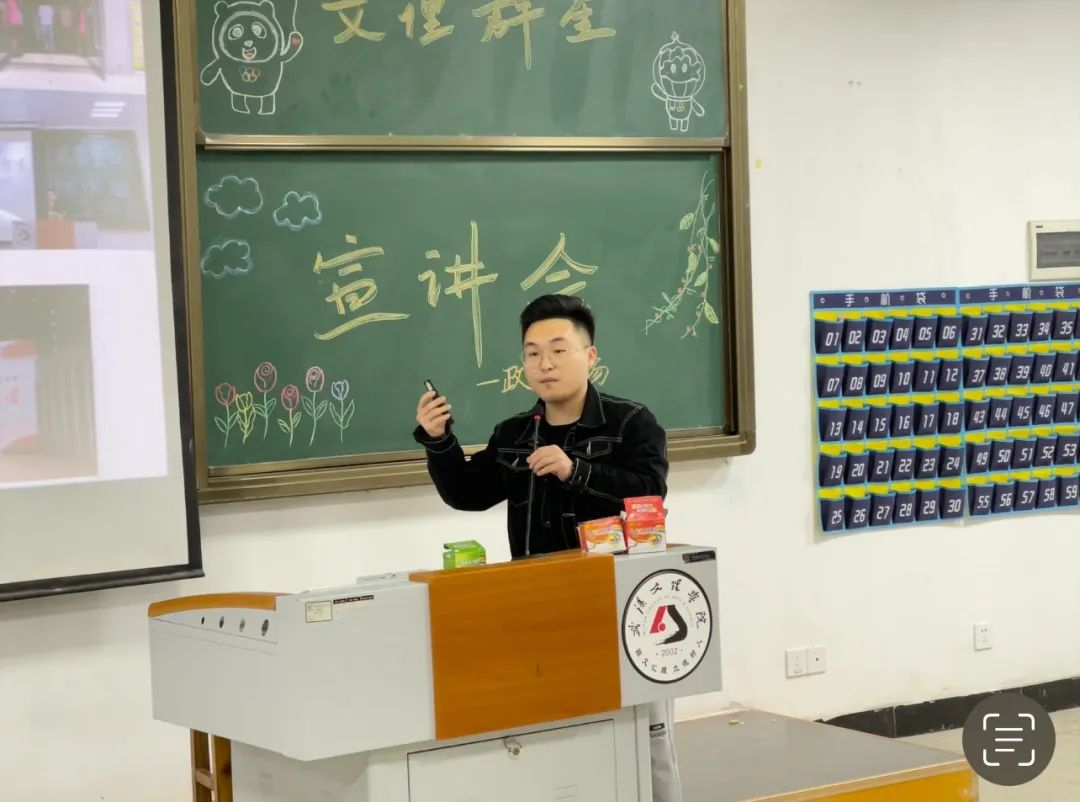 宣讲内容:在学习上,程先锋学长建议我们多读、多背、多理解,理解为金,记忆为银;在竞赛上,从自己参加过的比赛“挑战杯”、“互联网+”给出经验,需要实践、做出作品、脚踏实地;从参加的员工工作中,鼓励大家丰富自己的老员工活并多去参加社团活动。