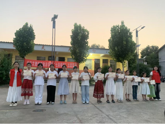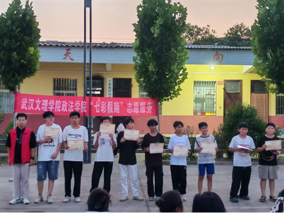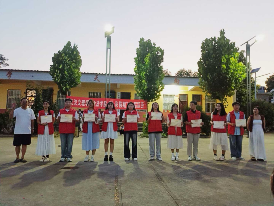 舞台中央的聚光灯,不仅照亮舞台,更聚焦成长!本次演出特别设置颁奖环节,既为暑期学堂里努力学习、进步明显的孩子提出表扬,见证“知识和成长双向奔赴”;也为辛勤付出的志愿者“小老师”和带队老师颁发荣誉,感谢他们的默默耕耘。英国上市公司官网365“青衿之志”志愿服务队荣获十里铺村赠予锦旗,以表彰团队在暑期“三下乡”社会实践中的辛勤付出。志愿服务队扎根乡村,用实际行动践行青春担当,这份荣誉既是对志愿精神的肯定,更彰显了校地联动共筑温暖的美好情谊。