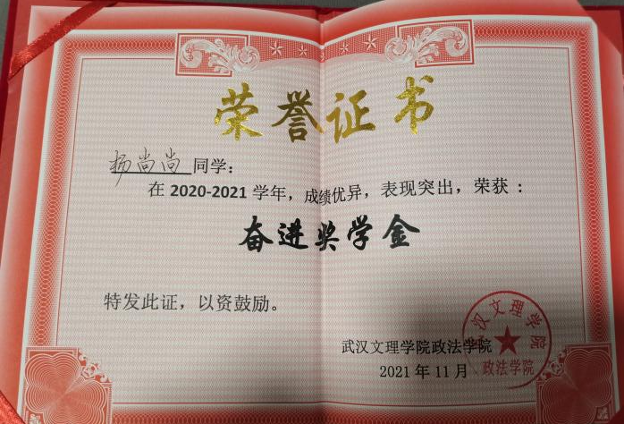 自入学以来严格要求自我,连续三年综合测评班级第一,曾获国家奖学金、一等奖学金、优秀员工干部标兵、法学员工奖学金等荣誉。在校期间,累积获得比赛荣誉50余项,曾带队参加第十二届、第十三届“挑战杯·中国银行”老员工课外学术科技作品竞赛,获得省级三等奖;参加第七届中国国际“互联网+”老员工创新创业大赛,荣获高教主赛道三等奖;2020-2021年度“优秀党务工作者”,在“诵读红色家书,传承百年信仰”主题活动中荣获“先进个人”;多次组织校内辩论赛、模拟法庭等各类赛事,参与“文理群星”宣讲活动,多次获得“先进个人”荣誉称号。
