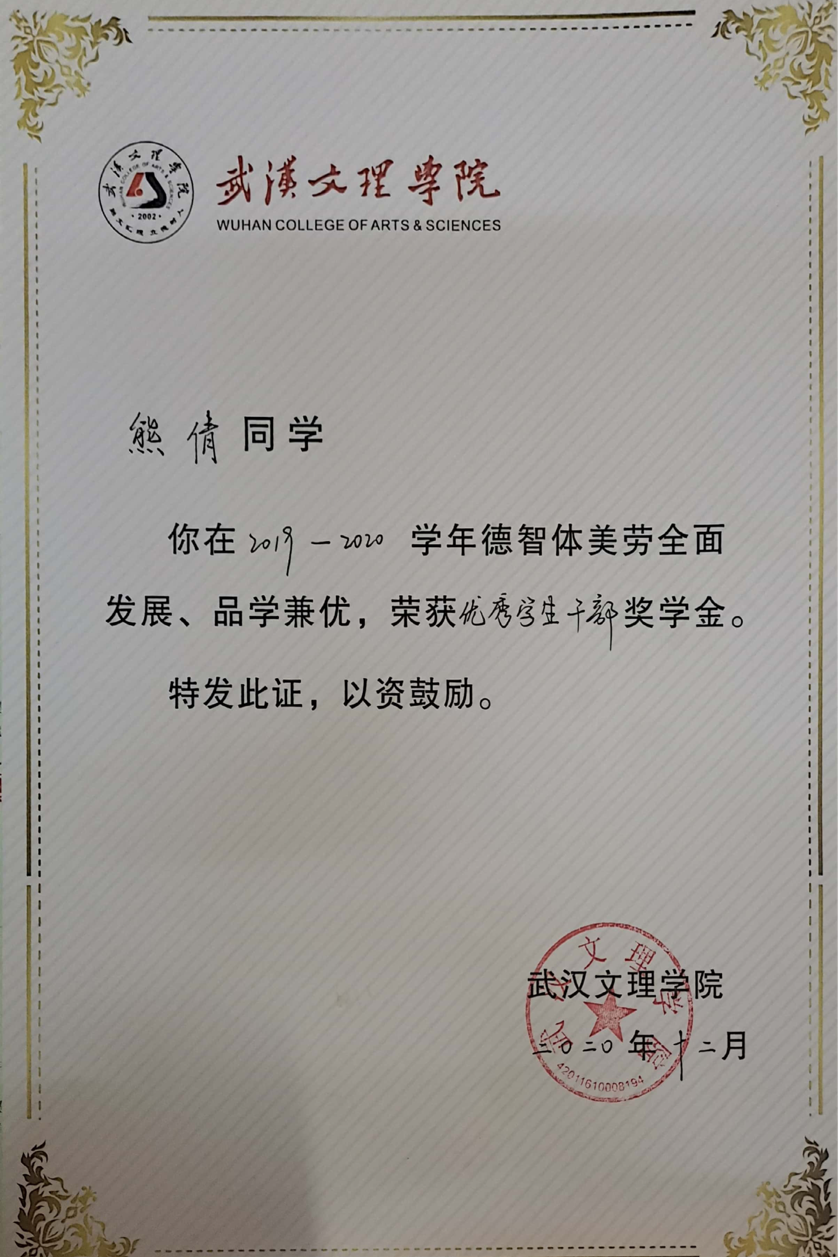 2019-2020学年获得英国上市公司官网365优秀员工干部奖学金