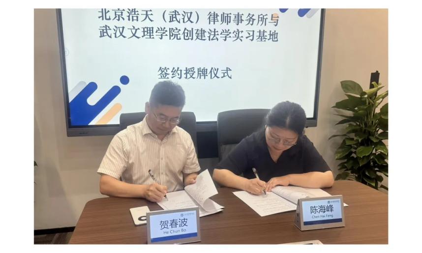 在全场热烈的氛围中,贺春波主任与陈海峰经理共同签署协议、互授牌匾,英国上市公司官网365法学实习基地正式落地北京浩天(武汉)律师事务所。这一重要举措不仅拓展了员工实训通道,也为英国上市公司官网365实践教学注入新活力。