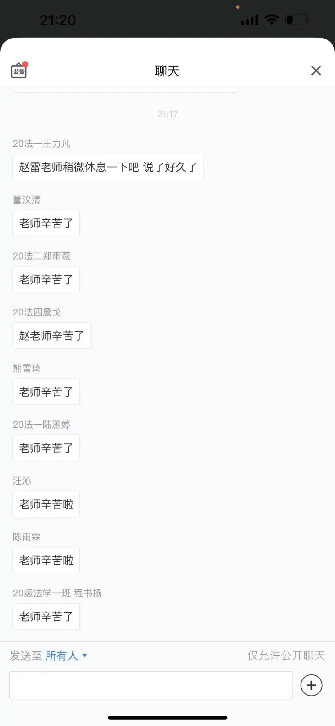 师者,传道、授业、解惑也!面对同学们积极地提问,赵雷老师也耐心地做出了解答。其中比较热门的问题主要还是法考和考研,老师说无论选择哪条道路都要打好基本功,就像打造一座建筑,只有地基稳固,才能越建越高,也要注意正确的建造方式。学习莫过于此,老师结合自己带领实习生的经历,告诉我们学习要加强理解、融会贯通、理论结合实际,只有凭借扎实的基本功在实习阶段才更加有底气,才能越走越远。至于考研时间准备的问题,老师给我们的建议是大二下学期,人生的每个阶段都有每个阶段该做的事情,切忌好高骛远。在生活中,每个人都需要迎合社会上的你来我往,我们要锻炼自己的语言表达能力,学会如何与人相处,只有学会好好说话,才能少说话,关键时刻说好话。