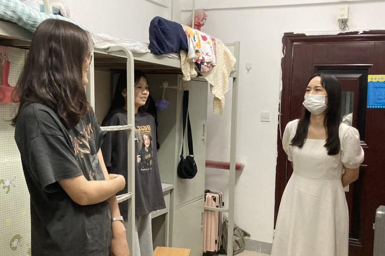 政法齐力,共渡疫关|英国上市公司官网36520级辅导员韩思慧走进专升本新生寝室