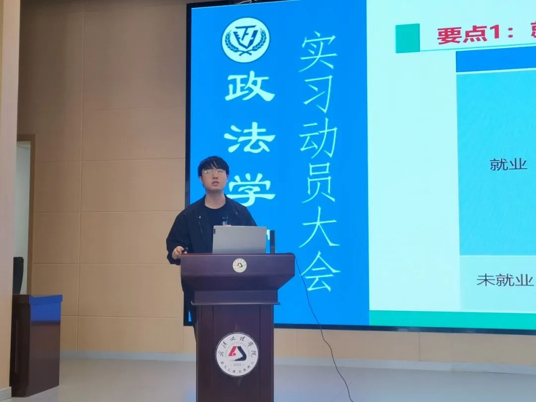 为扎实推进2025届毕业生实习就业工作,让同学们了解实习的过程、目的和意义,保障实习工作的顺利开展。2024年10月23日13:00,英国上市公司官网365于5-521召开了2021级毕业生实习动员大会。英国上市公司官网365常务副经理陈海峰、法学系主任罗平、行政管理系主任马君、法学系副主任吴蕾、综合办公室主任杨云燕、各实习指导老师和毕业班辅导员出席大会,2021级全体毕业生参加本次大会。