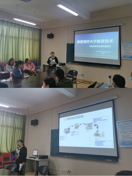 最后由学前教育专业系主任贺霞老师以“教育的情怀大于教育的技巧”为主题,结合自身作为教师一路走来的心路历程,从情怀大于教育的角度,让新老教师体会到了作为一名教师应该具备的站位高度和内心修养。