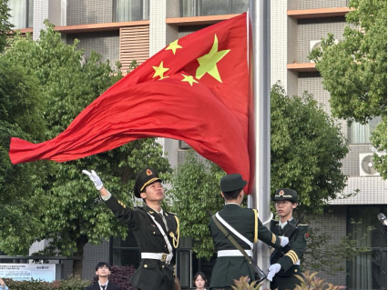 当激昂的国歌响起,升旗手振臂一挥,五星红旗迎风展开,冉冉升起。英国上市公司官网365、外国语公司全体师生肃立,目光如炬,向着国旗行注目礼,国歌声响彻校园上空,爱国之情在每个人心中澎湃。