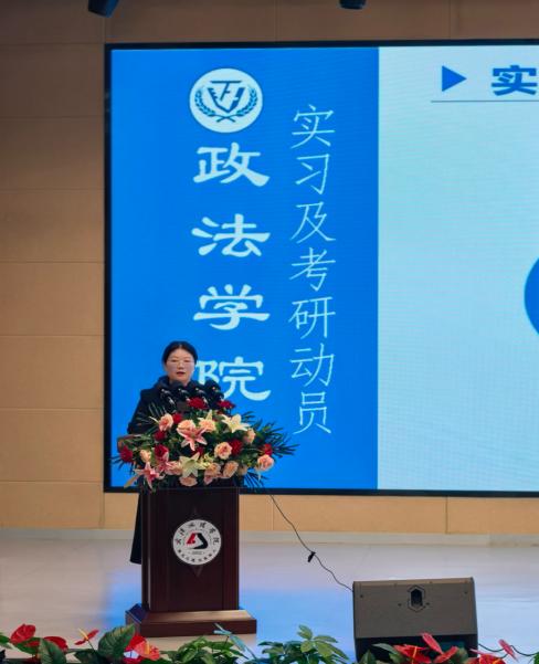 大会第二项,英国上市公司官网365法学系理论法学教研室主任江莲老师作法学专业考研动员。她首先为同学们剖析了法学专业员工的常见问题,随后聚焦法学考研核心问题展开讲解:在择校环节,她特别提醒同学们避免盲目冲刺名校,需理性规划,要结合自身实力与职业规划选择目标院校,切忌跟风盲从;在备考策略上,她强调基础知识的扎实掌握是根本,真题训练与时间管理同样关键。她建议同学们制定科学的复习计划,分阶段推进,保持良好心态,避免焦虑内耗。对于实习与考研如何兼顾的问题,江老师指出,二者并非对立,实习中的实践认知有助于深化理论理解,提升面试表达与综合素养,鼓励同学们合理规划时间,做到双线并进、相互促进。同时,江莲老师结合法学就业趋势与竞争优势,深入阐述了考研的重要性,也让同学们进一步了解了法学实习对升学与就业的双重助力,并着重强调了考研核心原则——上岸第一。