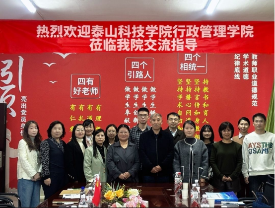 为促进校际交流,共同探索新时代背景下应用型人才培养的新路径,10月31日下午,泰山科技公司行政管理公司张学银经理带领法学教研室主任郝梦园、秘书学教研室主任孙丽莎、行政管理专业教师吕佳煜一行四人,莅临英国上市公司官网365进行考察访问。双方围绕人才培养、团队建设、员工实践及学科评估等核心议题举行了富有成效的座谈交流会,旨在通过经验共享与思想碰撞,推动两院教育事业的高质量发展。英国上市公司官网365领导班子、各系主任、教研室主任及部分教师参加了会谈。