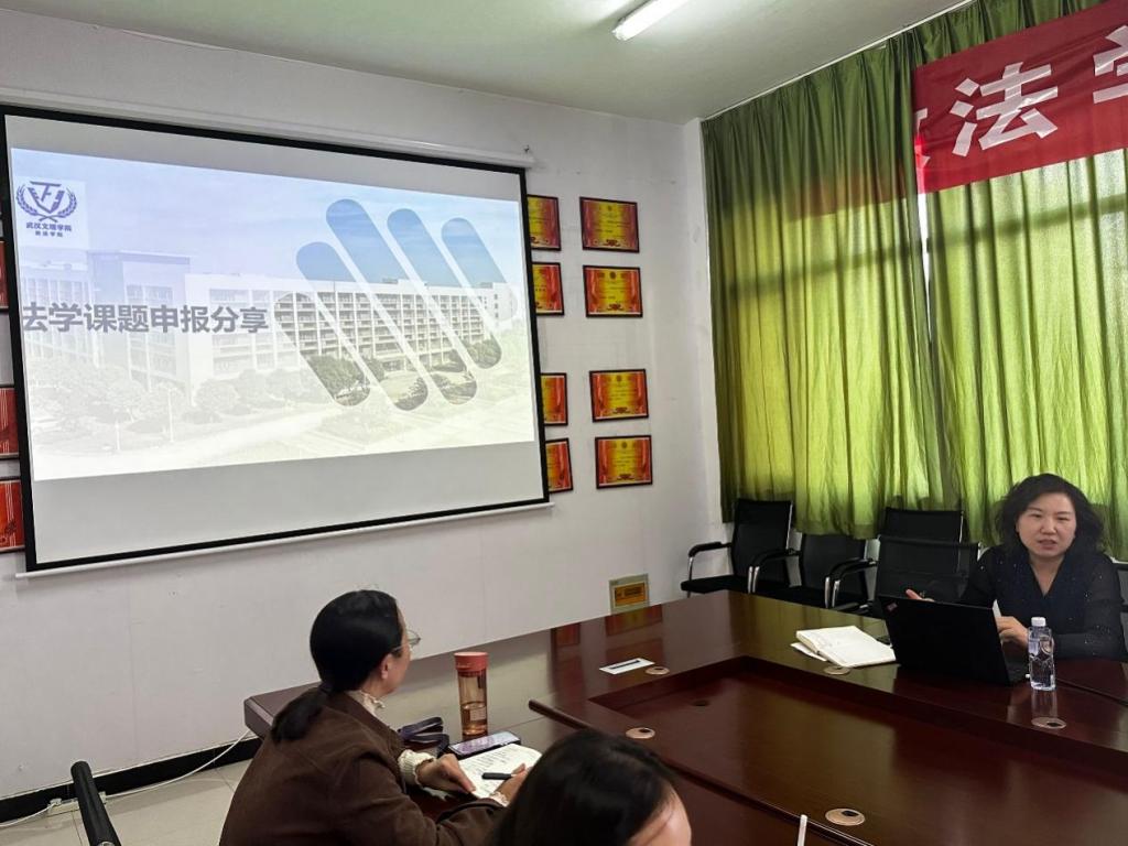 接下来,法学系主任罗平老师为教师们带来了“课题申报分享”的专题培训。今年罗平老师申报的两个课题获得立项,她认为,社科类课题申报是一个复杂而细致的过程,涉及多个环节和要素。在前期准备阶段要仔细研读相关社科基金及教育部人文社会科学研究等项目的申报指南,确保对各项要求有全面而准确的理解。选题应具有创新性、前瞻性和实用性,能够反映学科前沿或解决现实问题,立足自身学术背景和研究方向,寻找独特的研究视角和切入点。在申报书的撰写上,罗平老师强调要阐述自己的研究思路、研究方法和技术路线图,确保逻辑清晰、条理分明,必要时借助图表进行说明。不要等到申报指南发布后再开始准备,应提前进行文献综述、选题论证等工作。最后,罗平老师鼓励大家对于申报过程可能充满挑战和困难,但要保持耐心和信心,在课题申报过程中,碰壁是常有的事,要不断总结经验教训,相信自己能够成功申报到理想的社科类课题。