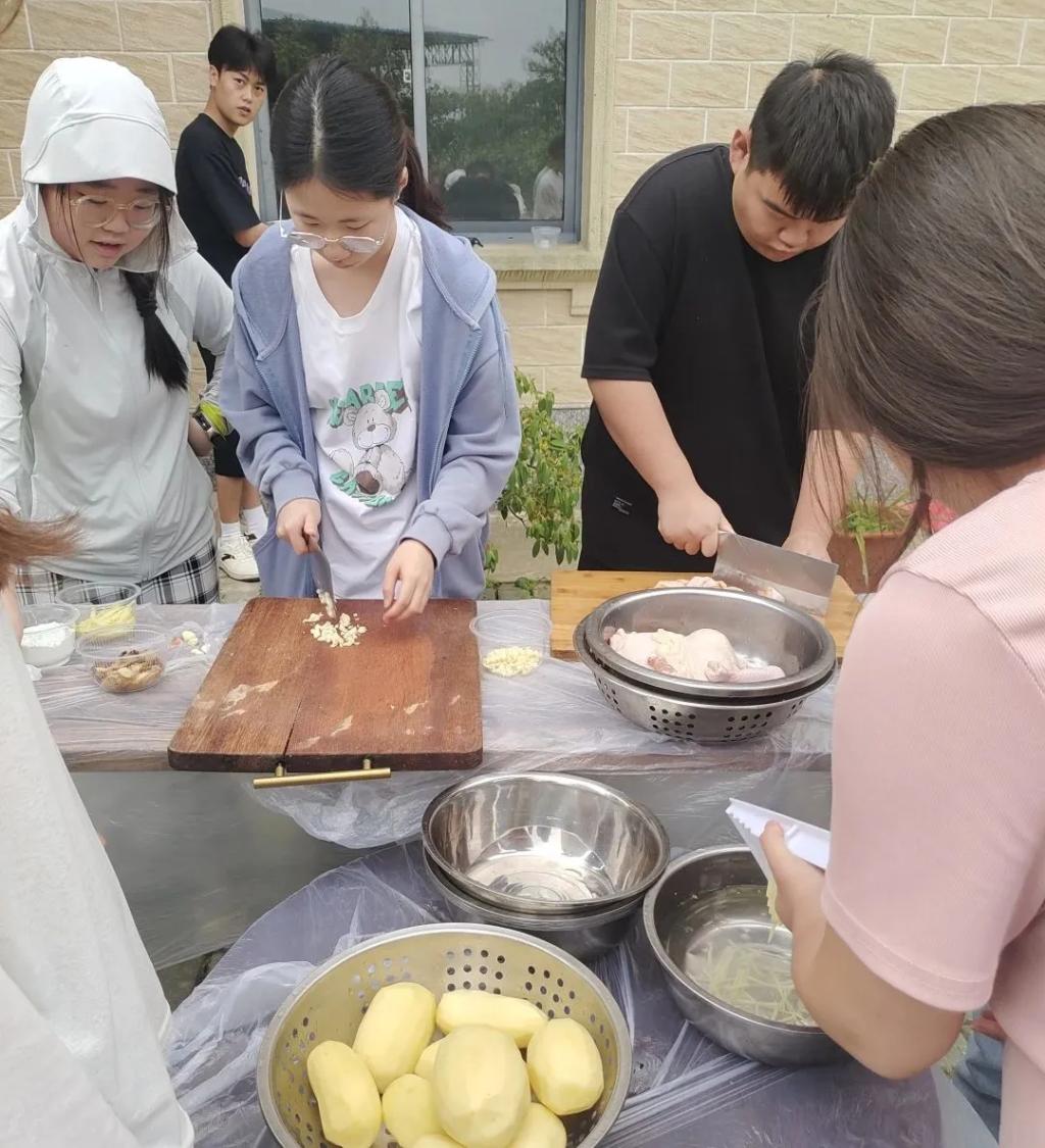 “我来削土豆!”“我来炒菜!”“我来收拾桌子!”听说可以展示自己的厨艺,同学们撸起了袖子就开始干活。这次做饭的经历不仅是厨艺的展示,更是对同学们协调能力的提升,让每个人做擅长的事,方可释放团队的最大动力。同学们有的帮忙打着下手,有的偷偷学着厨艺,还有的在排长的指挥下布置着即将开饭的场地。不多会儿,色香味俱全的饭菜便端上了桌,同学们齐聚一堂,享受自己的劳动成果。
