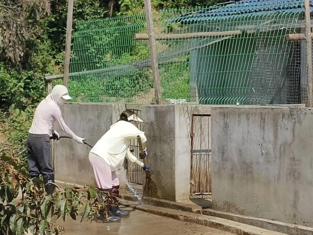 一屋不扫,何以扫天下。同学们在六畜兴旺这个环节进行了猪圈清扫,为山庄饲养的猪畜提供更干净舒适的生活环境。同学们分工明确,男生主要是铲运猪畜生活环境内的垃圾,女生主要运用高压水枪冲洗猪圈、清理路面残留垃圾。这个过程不仅提高了同学们的团队协作能力,也增强了他们之间的默契度和凝聚力。