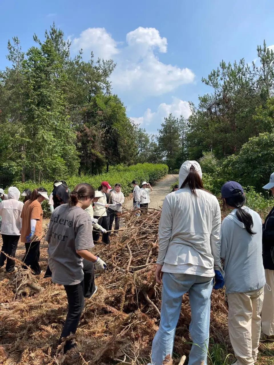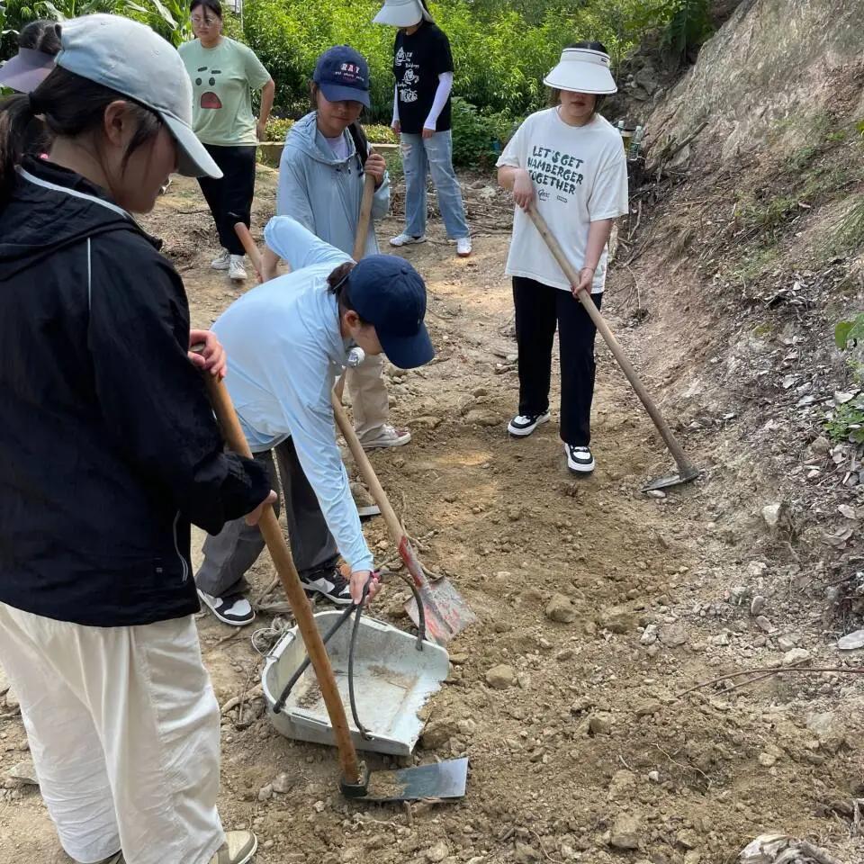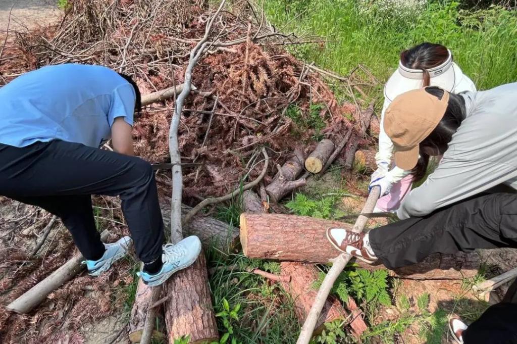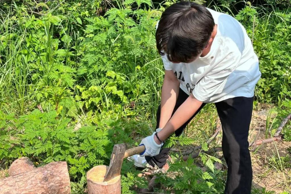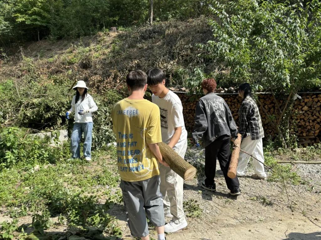始于自然,不止自然。在移花接木这个环节中,同学们深入自然,上山入林、砍树拾木,同学们都互帮互助,一起将树木搬运到指定地方。青年在劳作的同时,手上和脚下难免会“沾些泥土”,这也更能够让大家感受到了劳动之美。