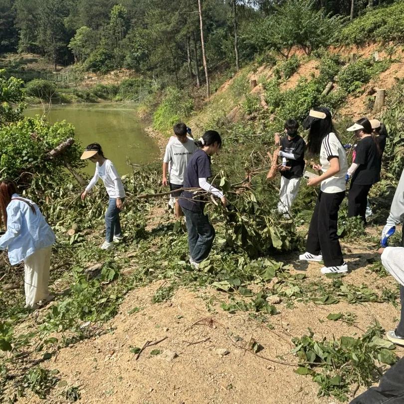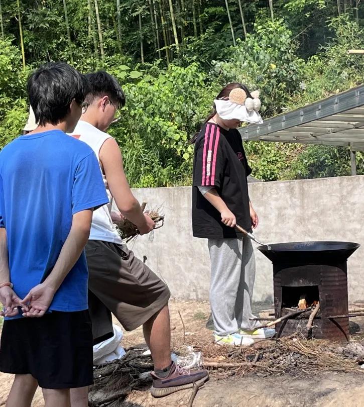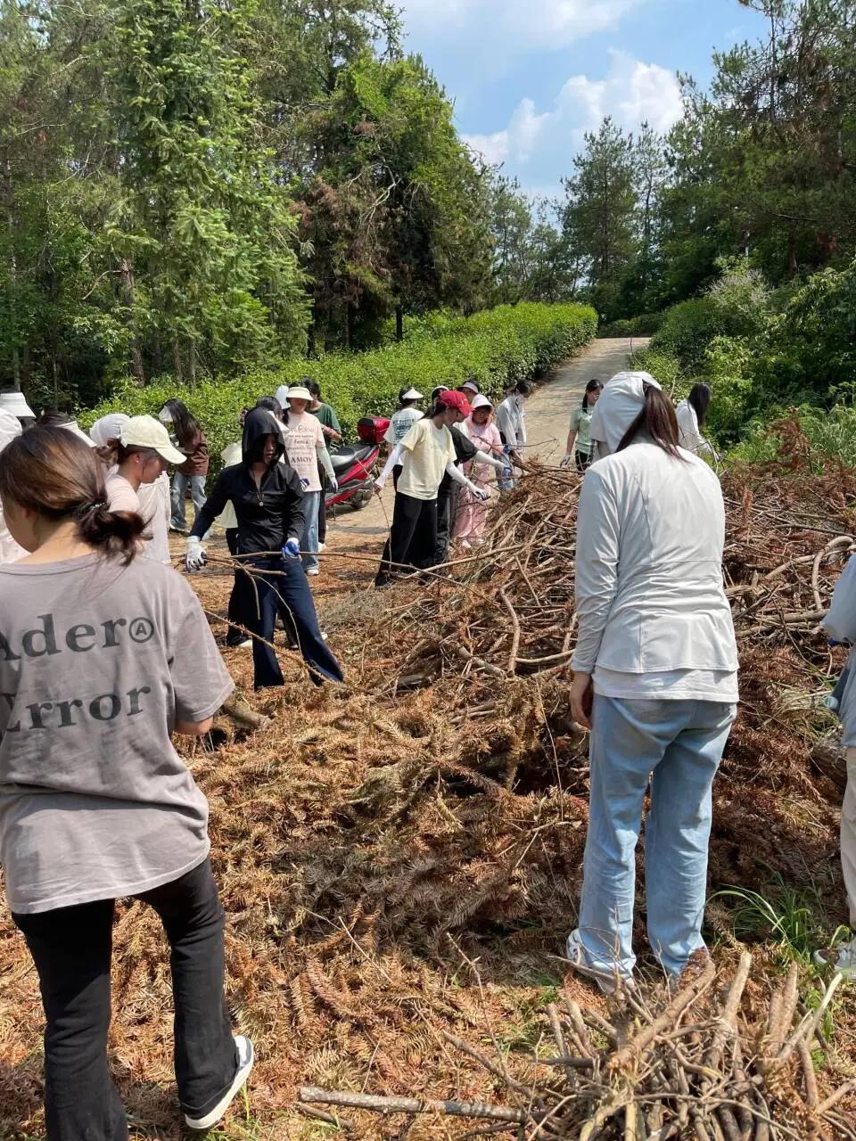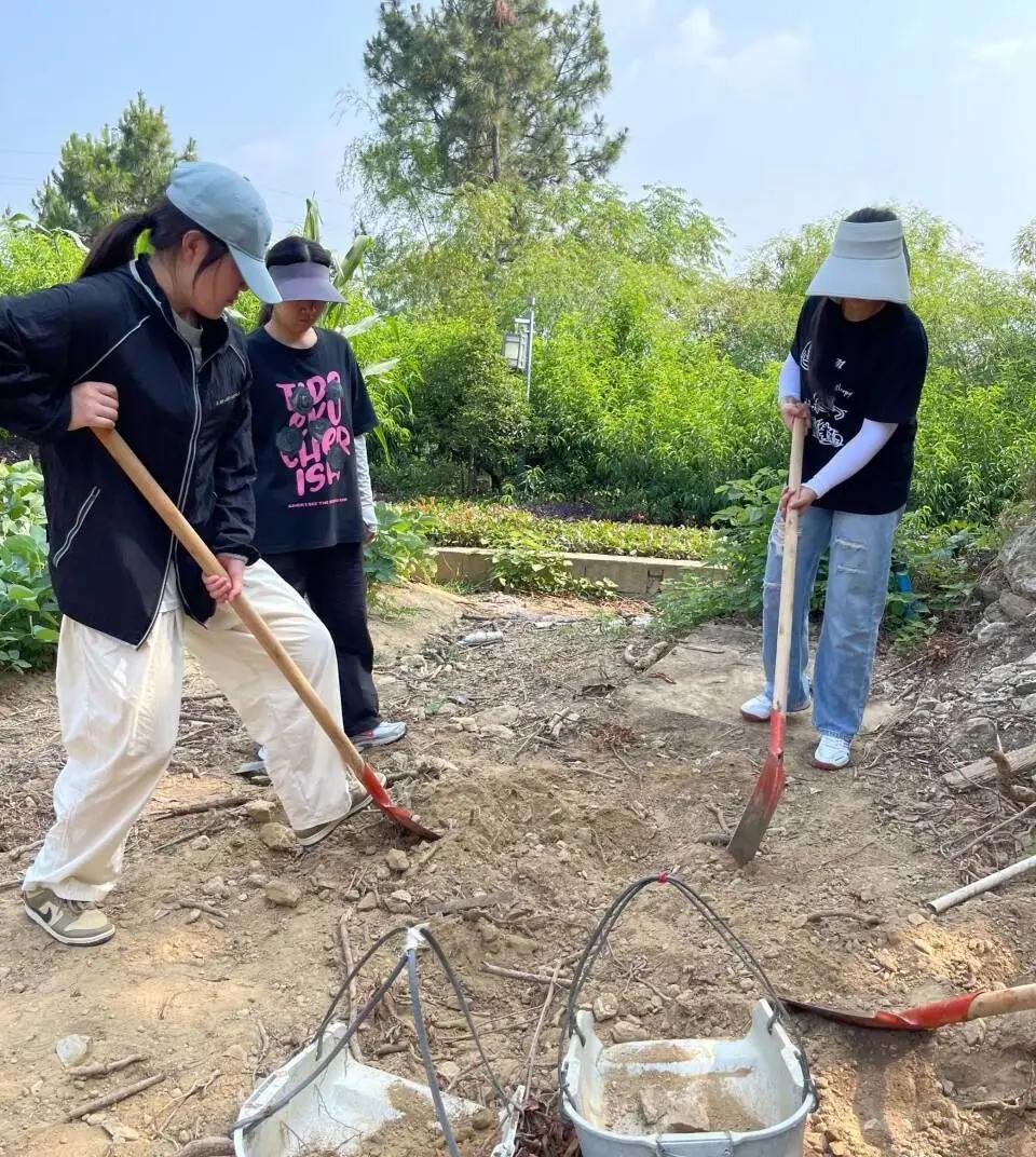 始于自然,不止自然。在移花接木这个环节中,同学们深入自然,上山入林、砍树拾木,同学们都互帮互助,一起将树木搬运到指定地方。青年在劳作的同时,手上和脚下难免会“沾些泥土”,这也更能够让大家感受到了劳动之美。