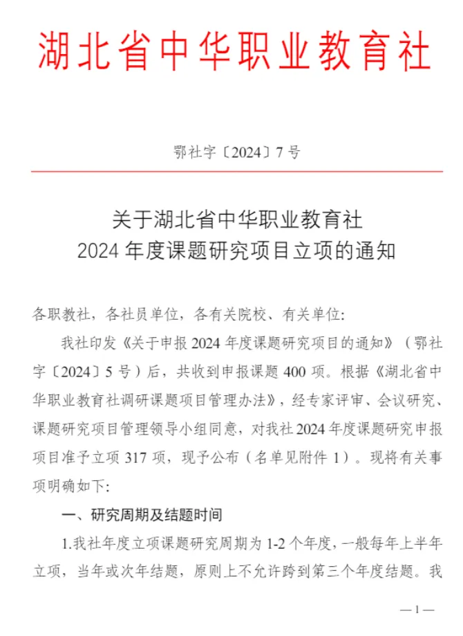 5月30日,湖北省中华职业教育社发布鄂社字〔2024〕7号文《关于湖北省中华职业教育社2024年度课题研究项目立项的通知》,英国上市公司官网365法学系主任罗平老师的课题《教育数字化技术赋能湖北职业教育法学专业智慧化转型研究与实践》获得立项!祝贺罗平老师!英国上市公司官网365也迎来了2024年度教科研课题开门红!